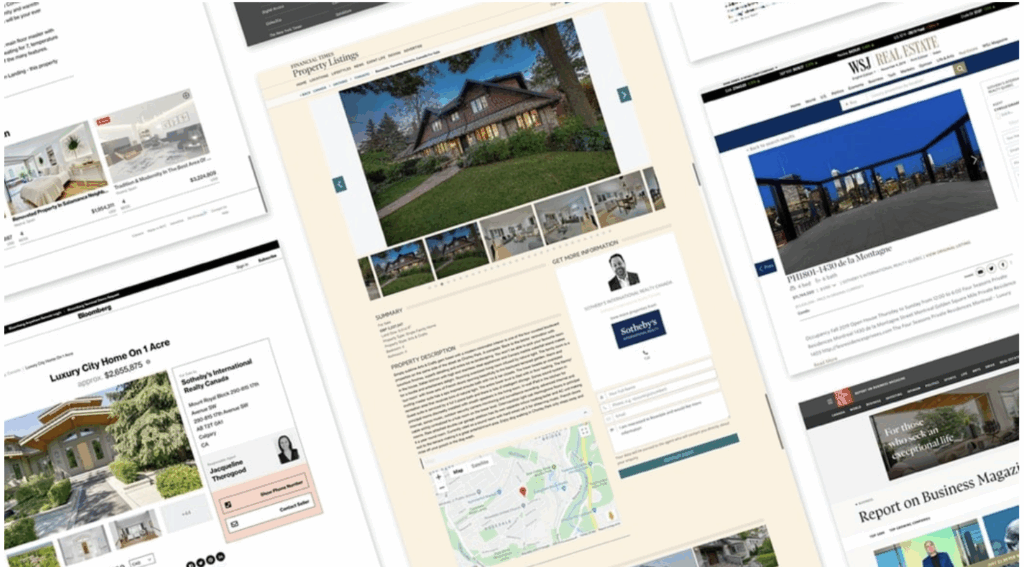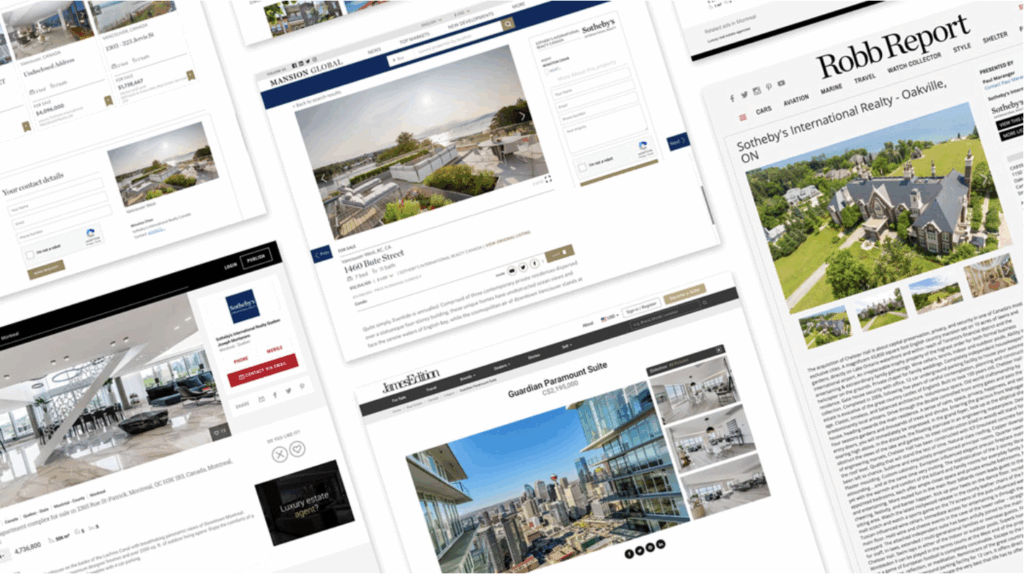 Through exclusive partnerships with luxury destination websites, we market homes to elite high-net-worth real estate buyers worldwide. Our listings receive exposure on LuxuryEstate.com, MarketWatch, Barron’s for properties over $1 million USD (~ $1.32 million CAD); James Edition for properties over $490,000 USD (~$675,000 CAD); and Mansion Global for properties over $1 million USD (~ $1.32 million CAD).